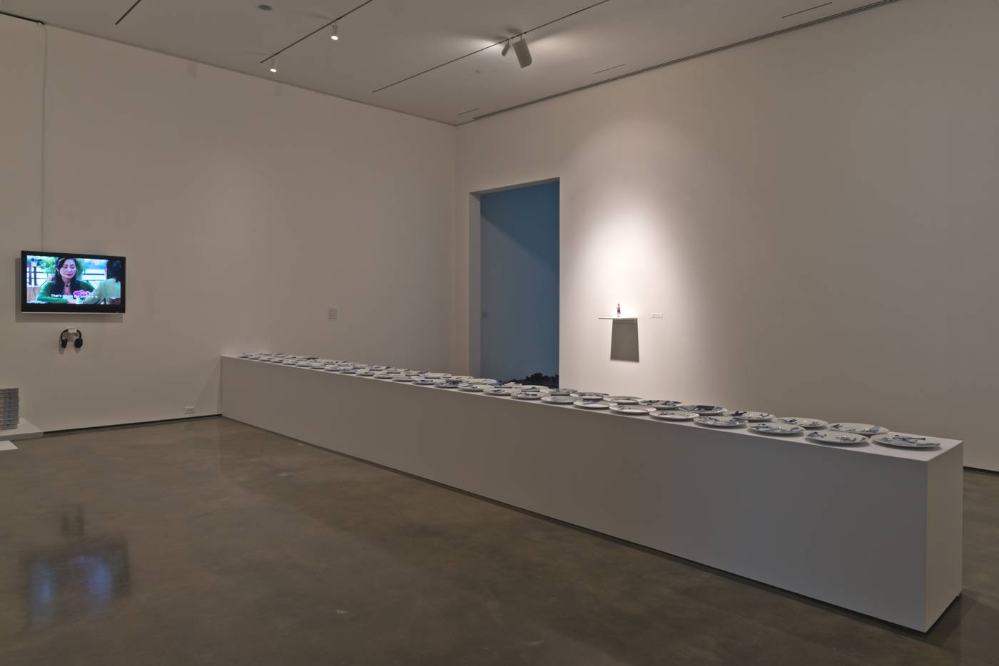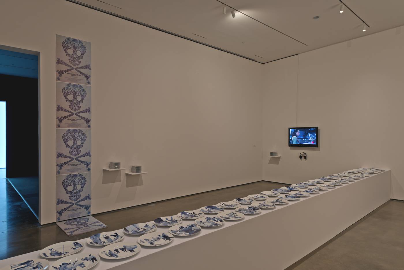 Global art as it is presented here is the palpable sedimentation of international exchange relations that span the globe. Such art fundamentally incorporate aspects of people, things, and processes as they travel and are perceived from a distance. From negotiations with a bureaucratic Fed-ex employee, standardized name cards that mediate face to face encounters in international markets, the sweaty back of anthropologist Charles le Roux, to blue and white ceramic plates that depict an outsourced labor force, these artworks measure the densities and histories of the global in the span of a card, the lengths of internet orders, and the intimate space between you and me.